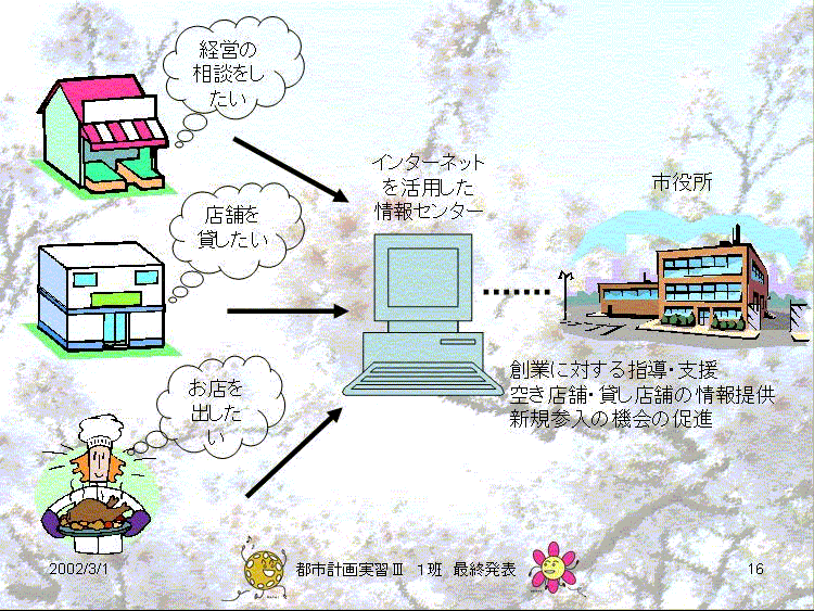 貸し店舗など)も提供できるようにし、役所側と商業主側をリンクさせます。