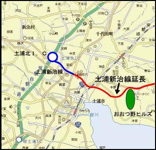 ・ルート/土浦北I.Cから延びている土浦新治線を「おおつ野ヒルズ」のある市北東部まで延長させる