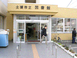 市立図書館は駅から徒歩20分(約1.7km)、最寄りのバス停から徒歩5分の場所(文京町)に立地し、利用者の多くは自動車で足を運んでいる。蔵書数は198,705冊あり、郷土資料をはじめ、紙芝居なども置かれている。図書館には土浦石岡地方社会教育センターが併設されており、工作室や研修室では、サークル活動や講習会などが行われている。移転させる必要性としては、@規模的限界 A施設の老朽化 Bアクセスのしにくさ