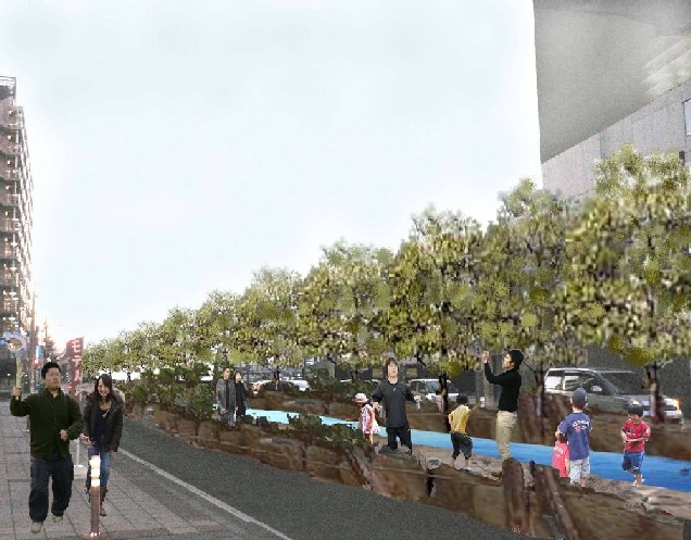 創出する。エリアの中心の魅力を増やすことで市街地コンパクト化への期待も出来る。また、親水緑道として“水”を市街地に