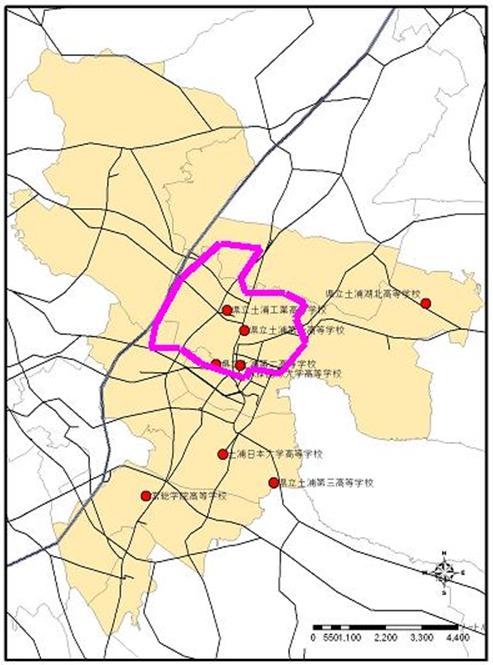 図4-9.二中地区と高校分布