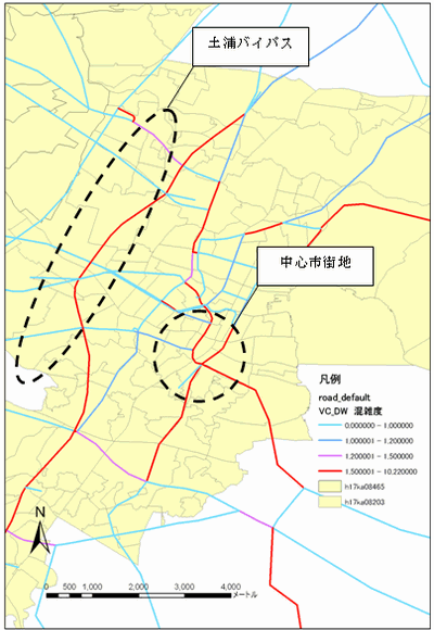 第1章 土浦市の概要 (3)1.2. 生活者視点での土浦市の課題 (2)1.2.3. 交通の問題次に、市内の交通についてみていきたい。シミュレーションにはJICA-STRADAとCUETを用いた。また、「20年後」の仮定は下記のように設定した。