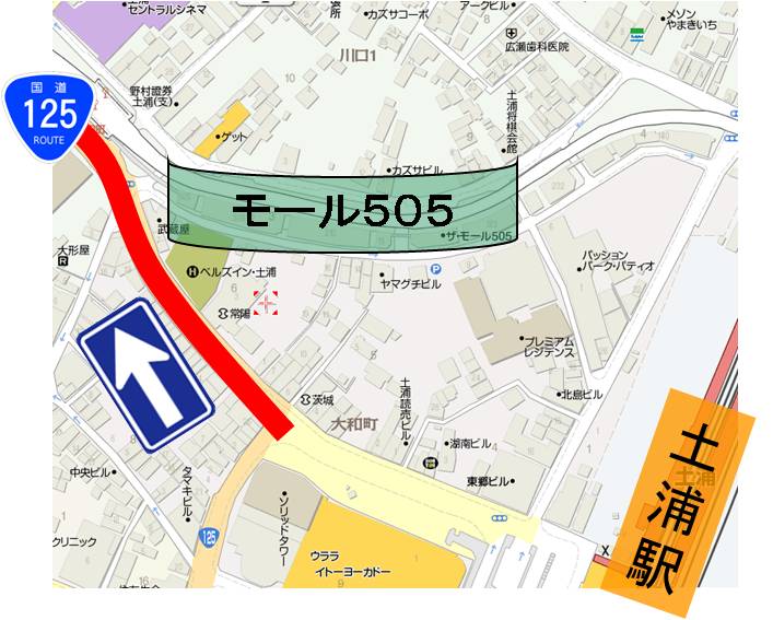 現在125号線が土浦の中心市街地を縦断するように通っているため、 中心部への車の流入、通過交通による慢性的な渋滞が発生している。 そのため、歩行者にとって快適な空間として整備されておらず、 また子供や子育て世代、 高齢者といった交通弱者にとって安心して歩ける空間の創出が必要となってくる。 そこで、 中心市街地において今後それらに配慮した対策を採っていく必要があるといえる。