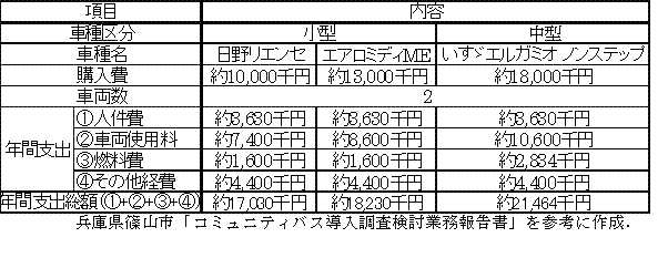 注1) 小型バスを導入するもう1つの理由として、現在はこの路線は中型のバスで運行されているが,私たちが実際にこの路線のバスに乗車