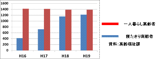 図17はH42年土浦市の地区別高齢化率を現したものである.土浦市では今後高い高齢者率になることが予想される.しかし,高い高齢者率の地域に医療施設が十分に分布されておらず,今後の医療福祉の需要に対応していないことがわかる.また図17では寝たきりや認知症の高齢者が増えてきており,原因として高齢者が孤立することによって,コミュニケーションをとる機会が少なくなってきているということが考えられる.これらのことから,今後起こりうる土浦市の問題を未来という時間軸で見たところ,医療福祉の需要増加と孤立する人々が増加することが予想される.