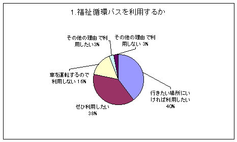 図4-2-2から利用したいと思う人が80%を越えており、老人の方々はこのバスに大きな期待を寄せていることが分かる。やはり車を運転できない人が多いということの結果であろう。