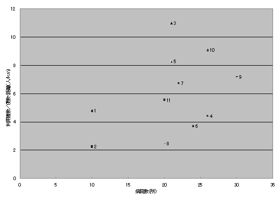 ![]() 図4-1-3 病院と利用者数の関係 |