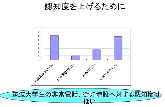 前述の通り、非常電話に対する学生の認知度は低く、非常電話を防犯君に改良しても認知されなければ意味をなさない。詰所にし