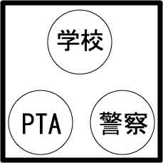 2-6 結果の考察我々は、これまでの予備的調査としての各主体へのヒアリング調査・現地調査や、本調査としてのアンケート調査・ヒアリング調査等、すべての調査結果の考察から見つけ出された課題とそれからわかるニーズについて、以下の四つにまとめた。 まず一つ目の課題として、「情報共有がなされていない」ことが挙げられる。これは、他の活動把握が出来ず効率的防犯活動につながらないという欠点である。次に、「子供のためのパトロールが不十分」であるという調査結果から、監視性の弱さが挙げられる。さらに「事件を集計したものがない」ことから、危険個所の把握ができない(根本的な解決に結びつかない)という課題が挙げられる。最後に四つ目の課題として「意見交換の場がない」ことから、他の主体の活動を把握できず、効率的活動が不可能であることが挙げられる。 つまり、この四つの課題に対応するニーズは、 「情報共有の必要性」 「パトロールの必要性」 「事件情報の集計の必要性」 「意見交換の場の必要性」 にまとめられる。 課題の解決にあたり、上記のニーズを満たす必要がある。そのために、各主体が特徴を生かした役割を担わねばならない。我々は、各主体の特徴を把握しその役割を定義するために、以下のような流れを踏んだ。 @主体の再検討→A各主体の現状の活動状況→B特徴の把握と役割分担 @主体の再検討 以前のイメージでは防犯ネットワークの主体を4つにしていたが、これを学校、警察、PTAの3つに絞った。 その理由として、 →学区単位で行う防犯活動に直接参加できる主体は学校・警察・PTAである →教育委員会は各学区間の連携や他の行政機関との連携がその役割であるということが挙げられる。