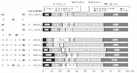 以下の図は、内閣府が行った体力・スポーツに関する世論調査の結果を表したものである。