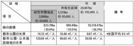 例えば、つくば市の研究学園地区では一人当りの公園敷地面積が全国平均を大きく上回っている。
