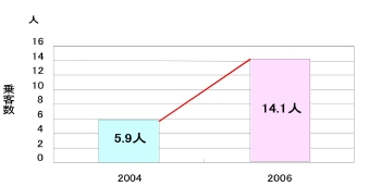 図 2からわかる通り、2006年度の1便当り平均乗客数は2004年度に比べ約2.4倍に増加している。