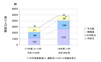 図 7が示す通り、今年度4月分のパスカード売上枚数は、昨年度新システム導入後の売上枚数を既に大きく上回っている。特に、学群生の増加が顕著である。