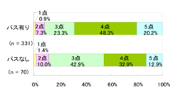 図 8から分かるように、パスカード所有者は非所有者に比べ高い満足度を示す割合が高くなっている。