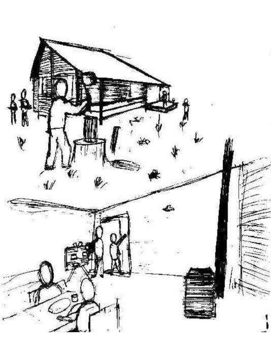 ・自治体が家の購入を行うことが困難な地区では里山の木を用いて住民が家をレクリエーションの一環で建設する。
