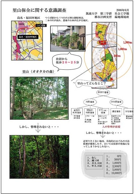 内容:茨城県やつくば市の開発構想で計画されている民有緑地(里山)・農地・屋敷林との宅地一体型事業などの実現可能性を探る。