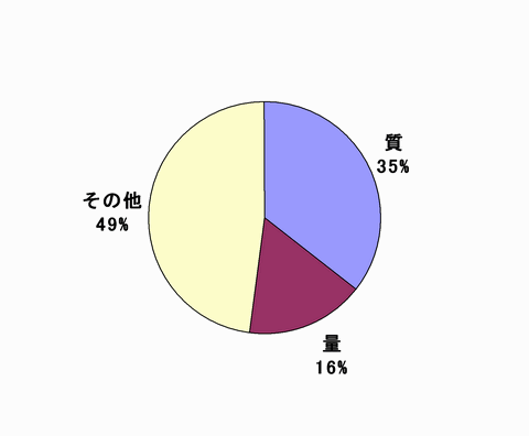 バス停に関して不満を抱えている人のうち、質に関して不満を感じている人が多く、 量に関しての不満は少ないことがわかった。 (運行システムに関する不満が多く挙げられたが、 これらはバス停設備に直接関わりはないため、その他に分類した)