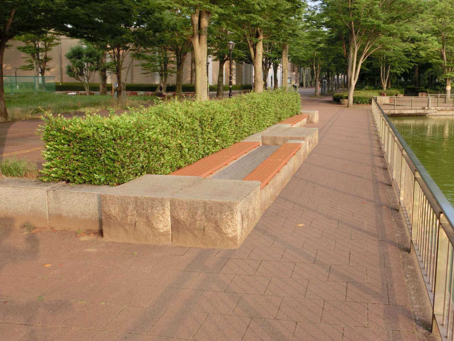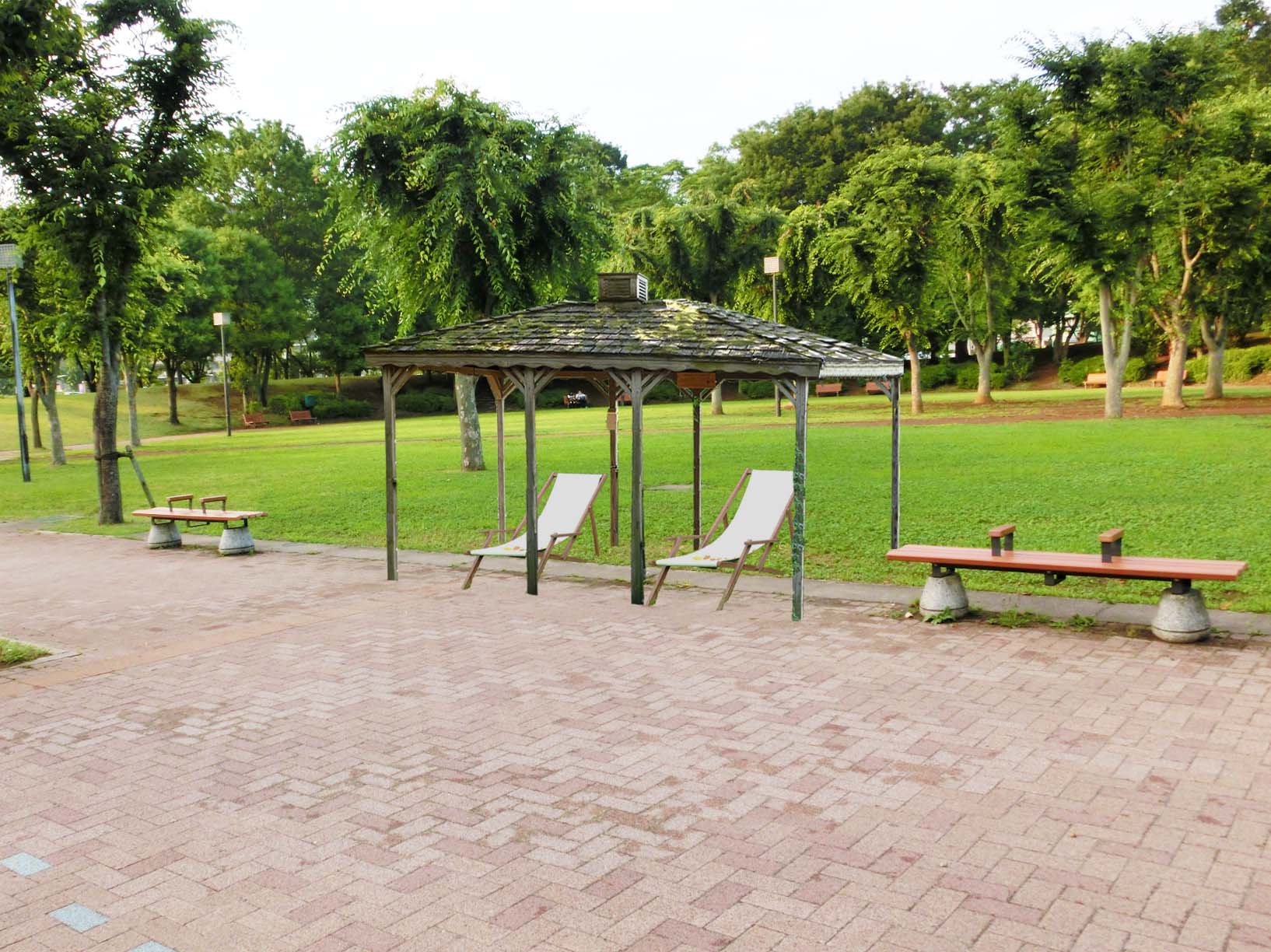 芝地には半屋外空間としてデッキチェアを置き、水場や公園施設で遊んでいる子供を見守りながら、パフォーマンスを眺めながら、別荘地のようにペデストリアンを味わえるようにする。