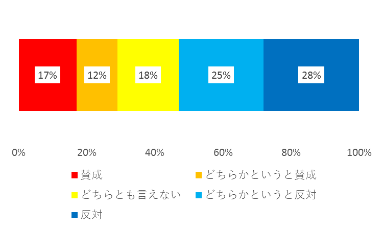 結果としては、「反対」、「どちらかというと反対」と回答した人は半数以上いた。一方で、「賛成」、「どちらかというと賛成」と回答した人も30%近くいた。
