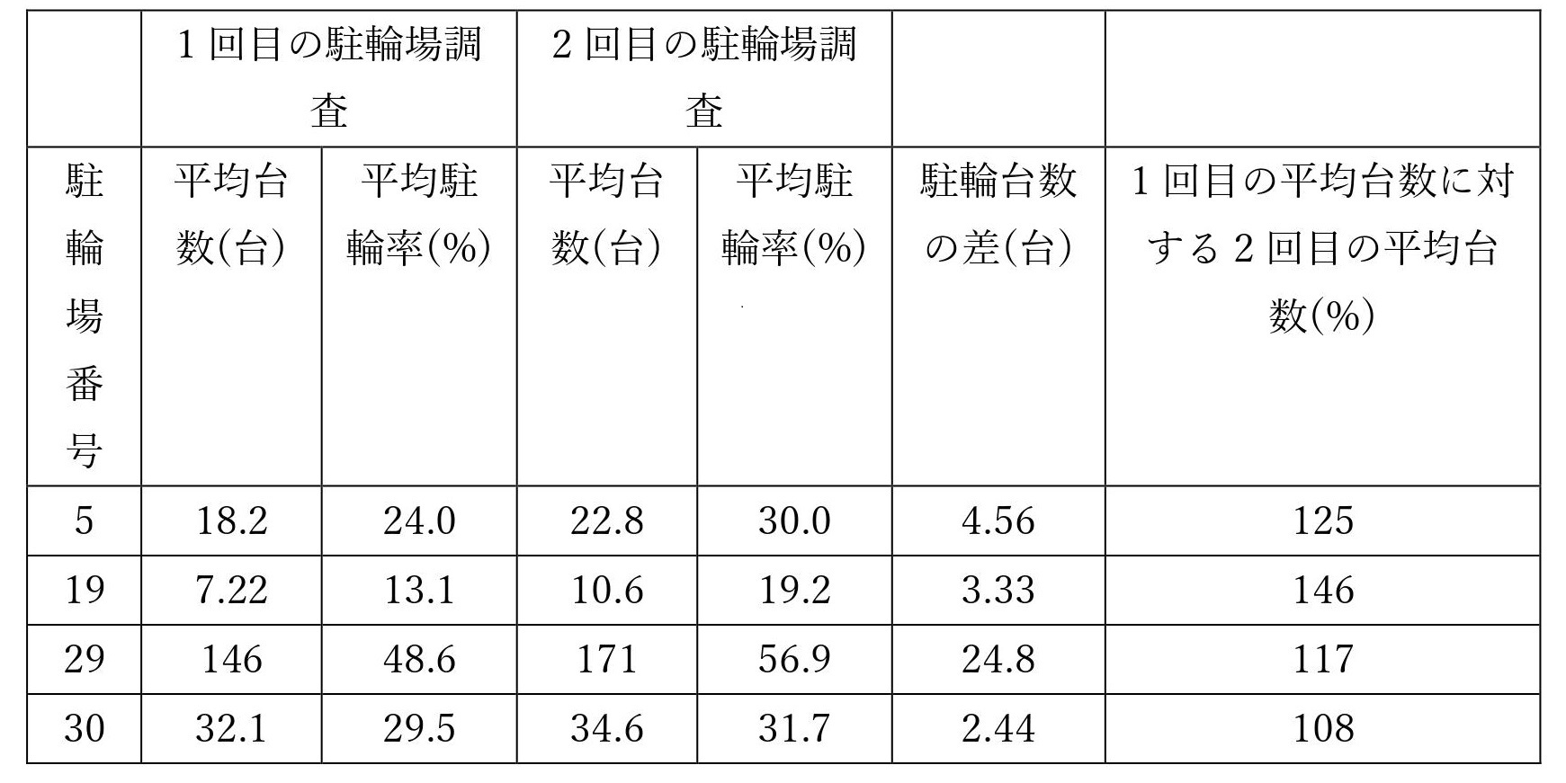 表2 誘導先の駐輪場における2回の駐輪場調査結果の変化